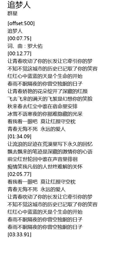 | [00:03.96] | 追梦人 |