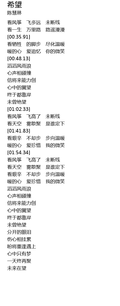 | [01:55.59] | kàn fēng zhēng fēi gāo le wèi duàn xiàn |