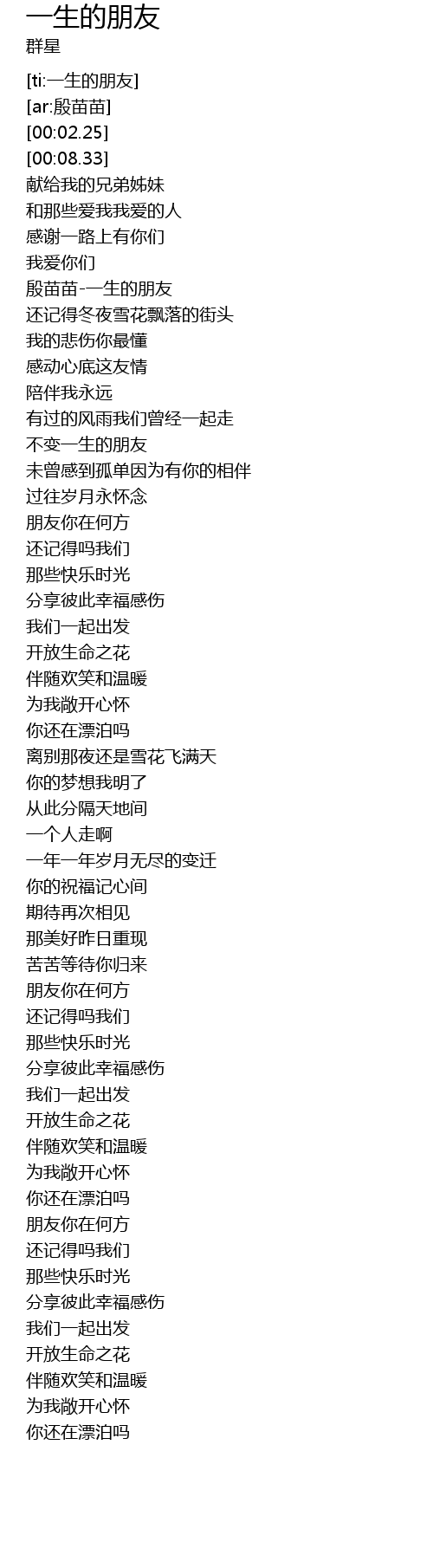 | [00:29.28] | 殷苗苗-一生的朋友 |