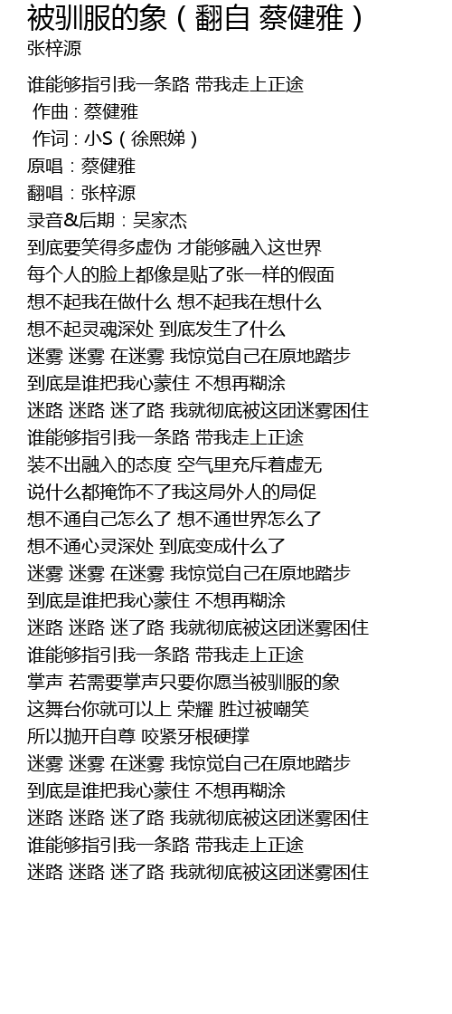 | [02:08.442] | 掌声 若需要掌声只要你愿当被驯服的象 |