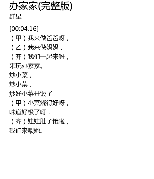| [00:06.48] | jia wo lai zuo ba ba ya, |