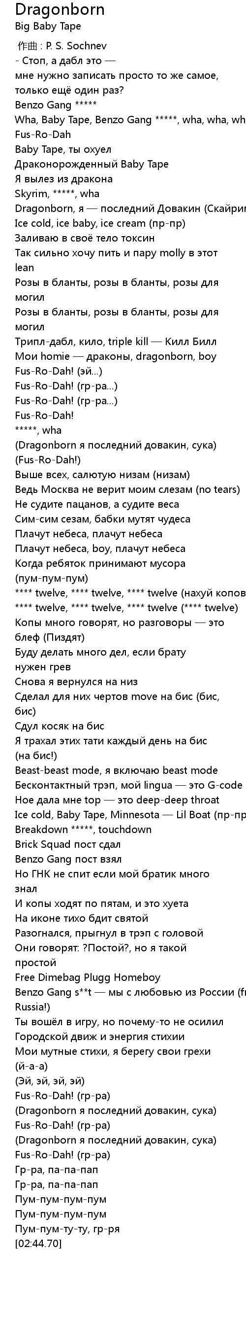 | [00:10.65] | Драконорожденный Baby Tape |