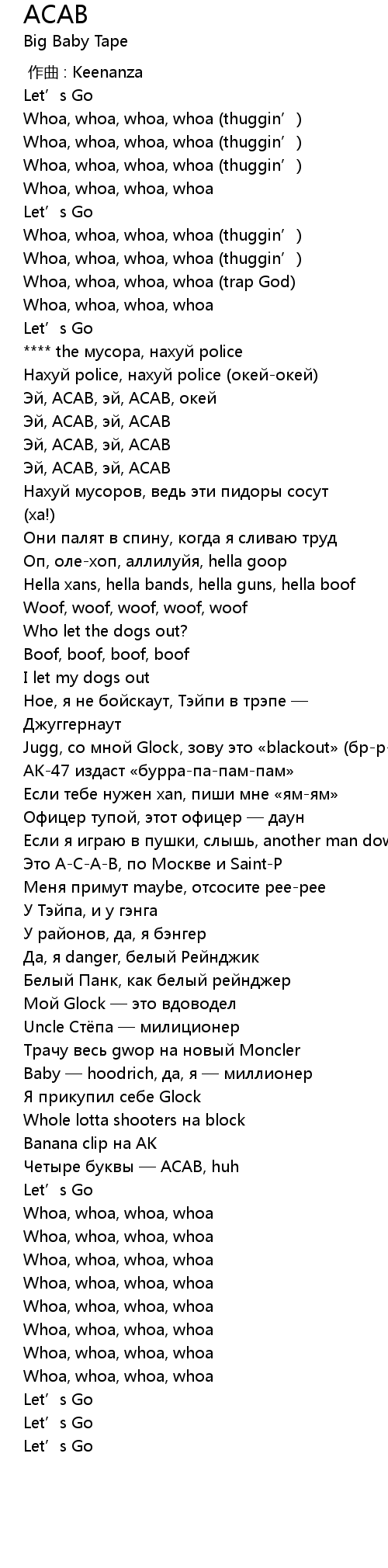 | [00:20.80] | Эй, ACAB, эй, ACAB, окей |