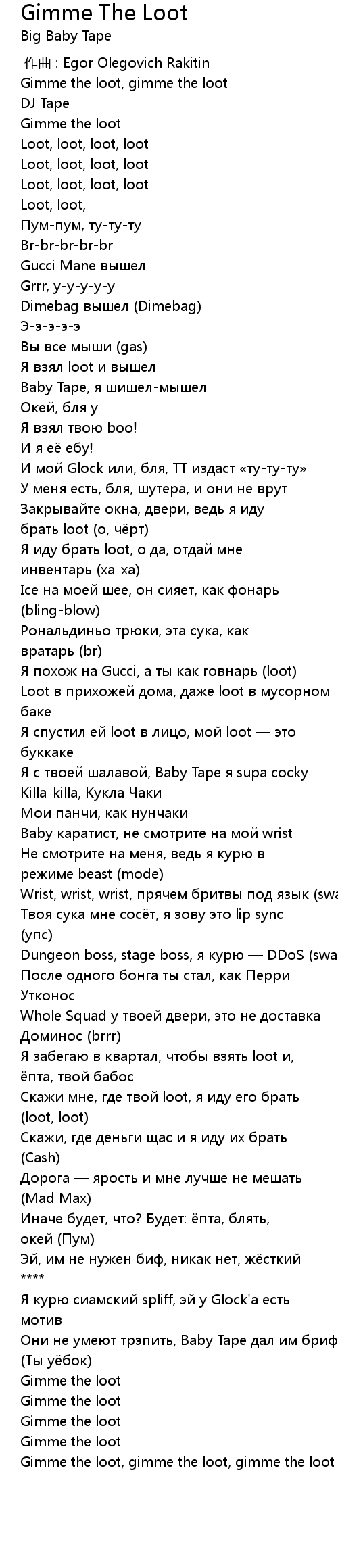 | [00:00.19] | Gimme the loot, gimme the loot |