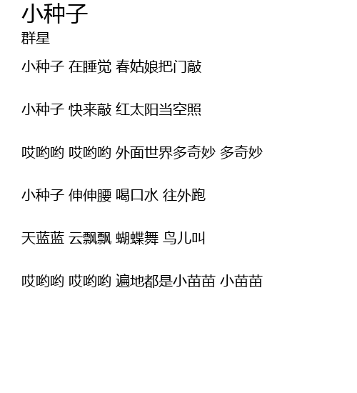 | 小种子 在睡觉 春姑娘把门敲 | |