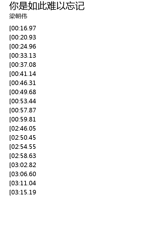 | [03:43.98][03:02.82][01:23.65] | 你是如此的难以忘记 |