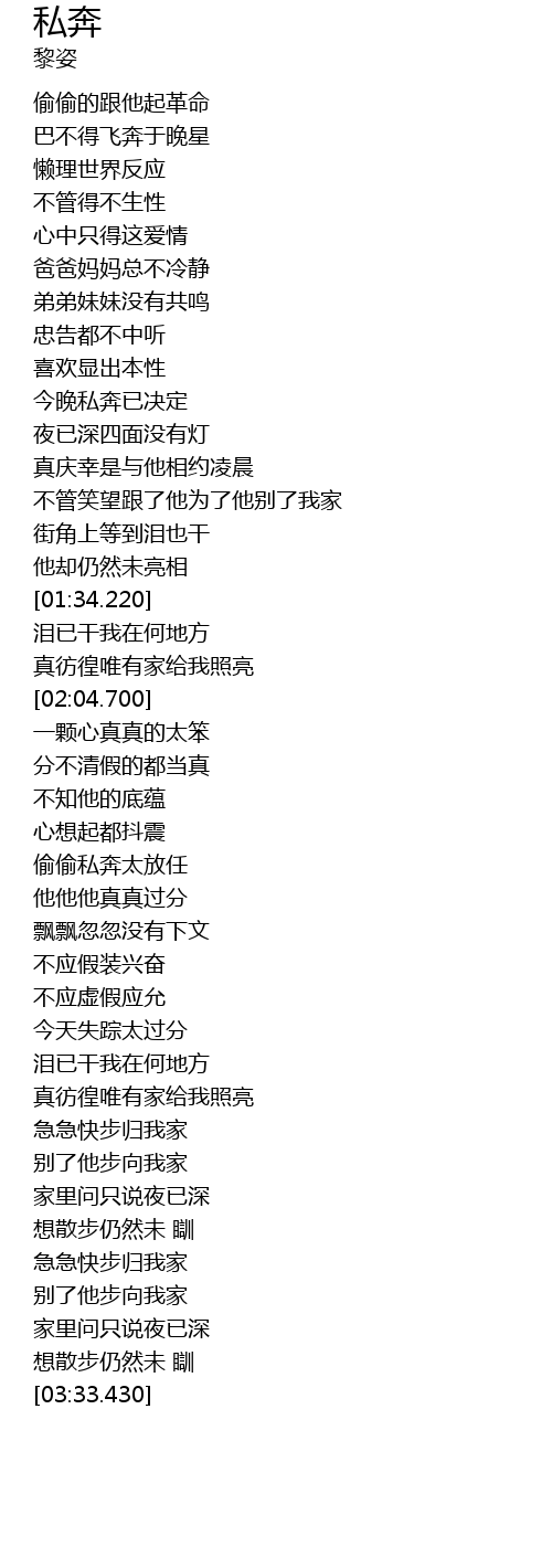 | [02:27.850] | 偷偷私奔太放任 |
