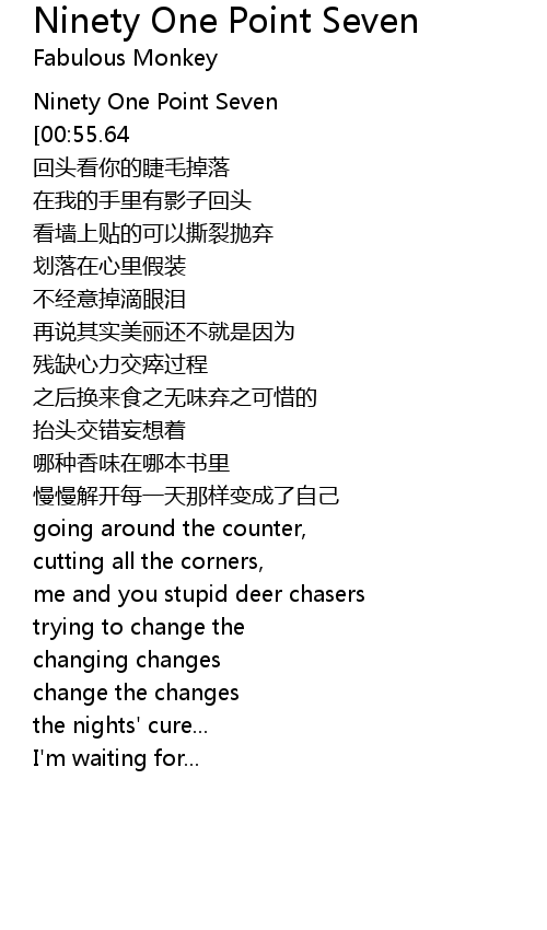 | [00:13.25][00:55.64][02:49.95] | Fabulous MonkeyNinety One Point Seven |