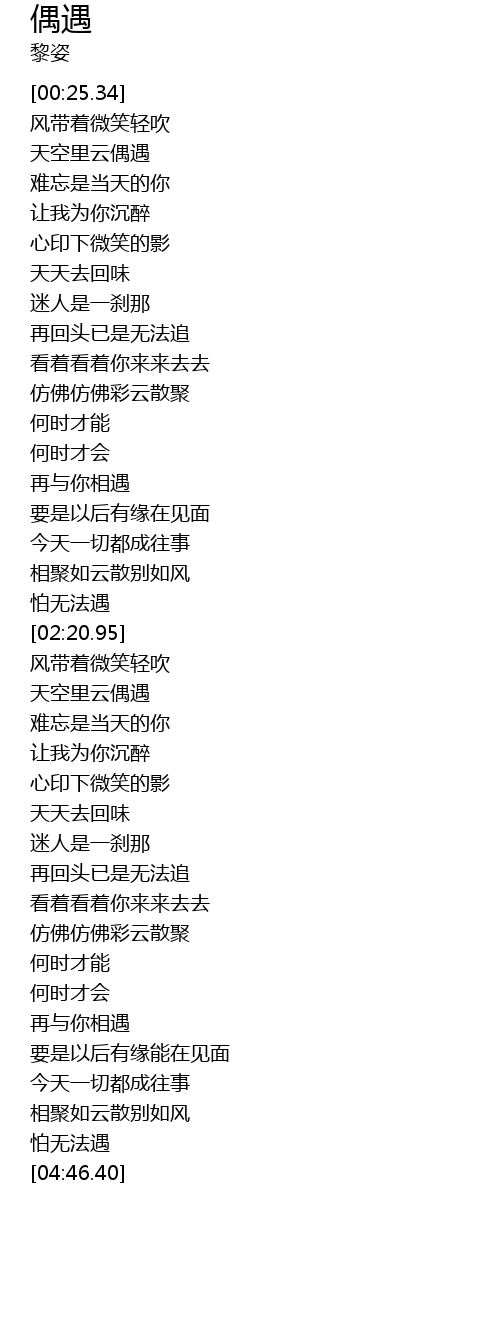 | [01:34.96] | 仿佛仿佛彩云散聚 |