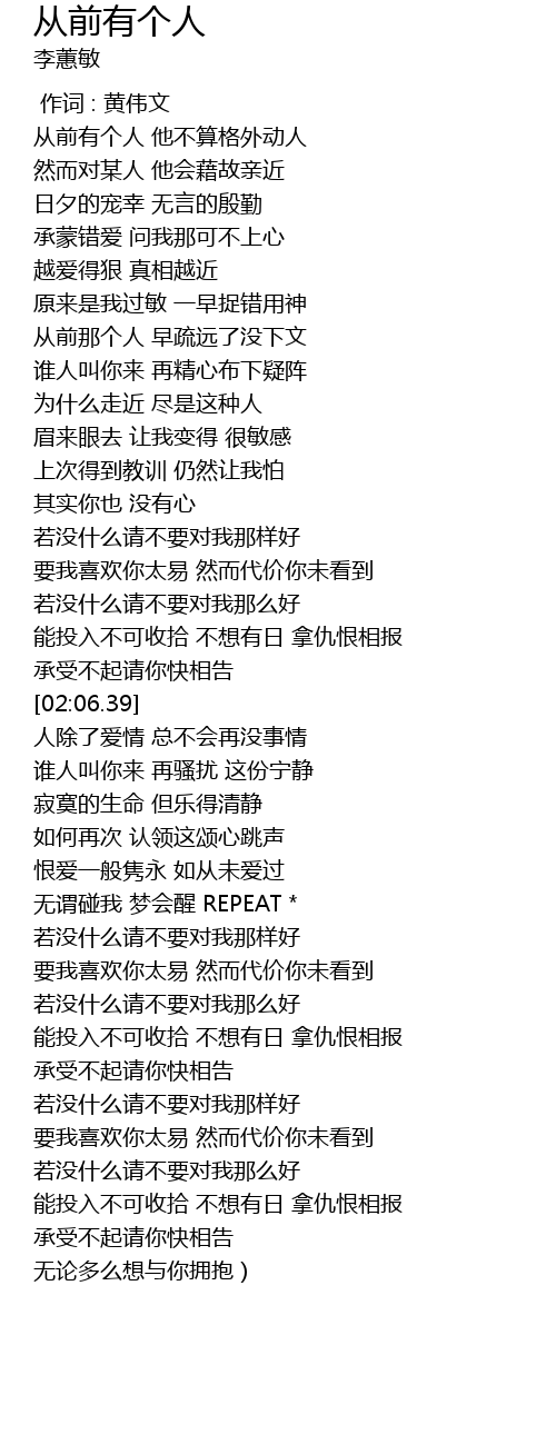 | [00:14.53] | cóng qián yǒu gè rén tā bù suàn gé wài dòng rén |