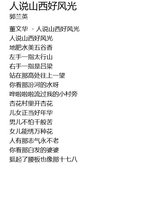 | [00:00.62] | dǒng wén huá rén shuō shān xī hǎo fēng guāng |
