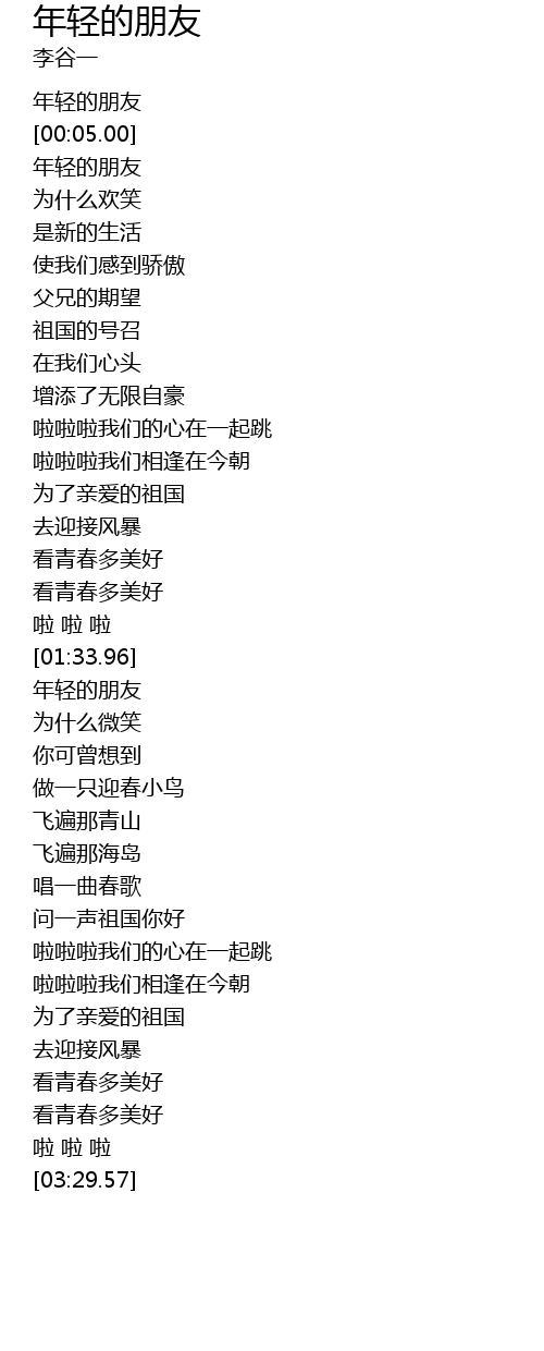 | [01:04.05] | 啦啦啦我们相逢在今朝 |