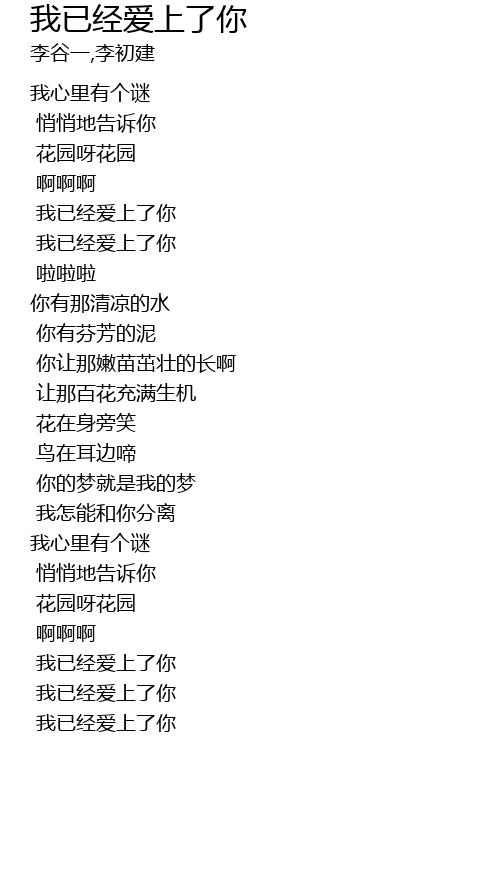 | wǒ yǐ jīng ài shàng le nǐ |