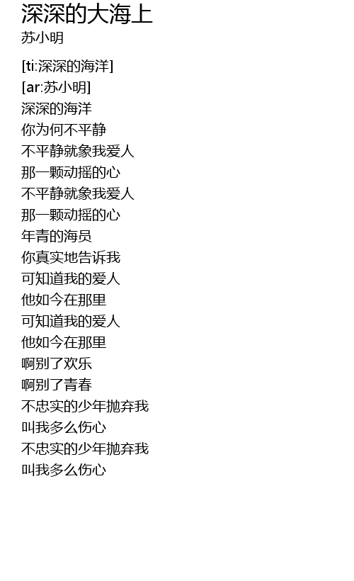 | [00:20.744] | 深深的海洋 |