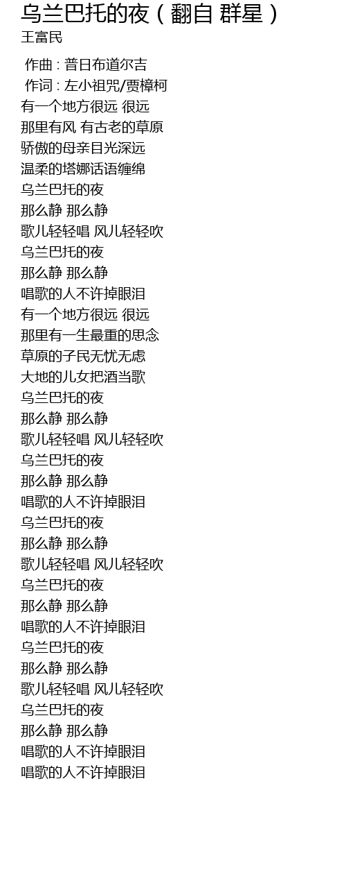 | [01:16.385] | 乌兰巴托的夜 |