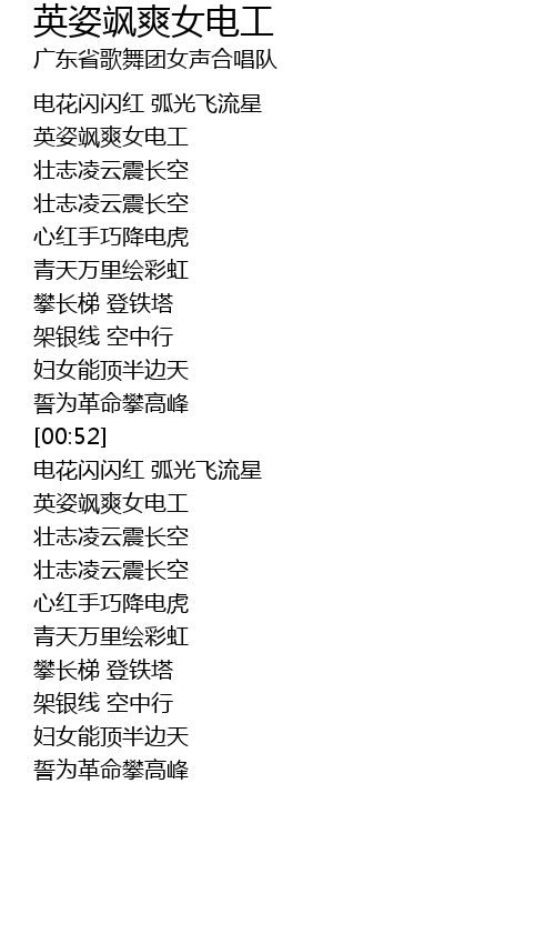 | [00:09] | 电花闪闪红 弧光飞流星 |