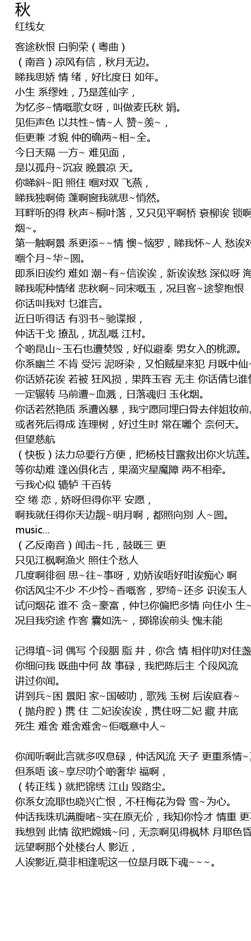 | 为忆多~情嘅歌女呀,叫做麦氏秋 娟。 | |