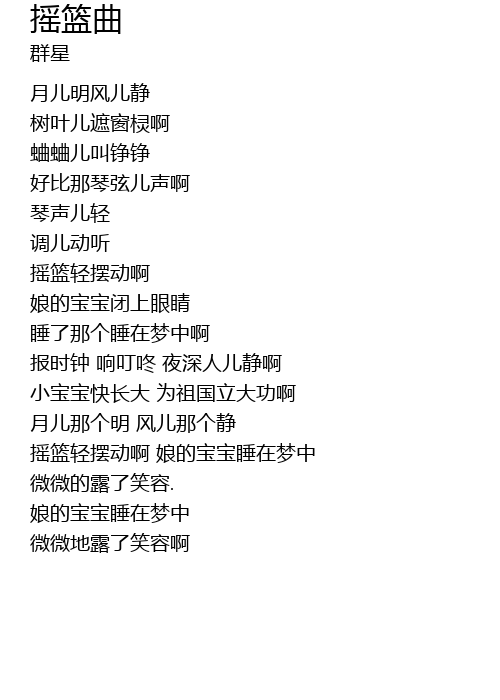 | [02:29.229] | 摇篮轻摆动啊 娘的宝宝睡在梦中 |