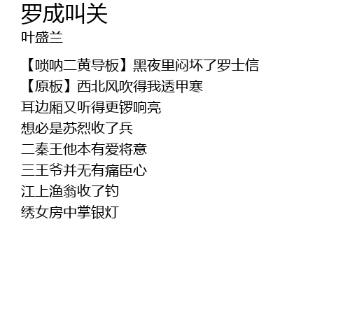 | [02:13] | 【原板】西北风吹得我透甲寒 |