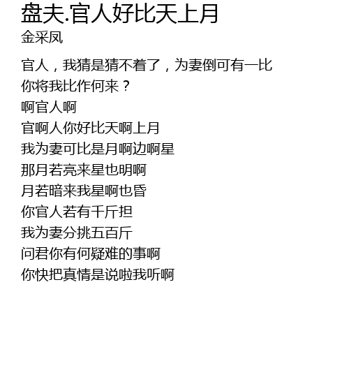 | [00:00.08] | 官人,我猜是猜不着了,为妻倒可有一比 |