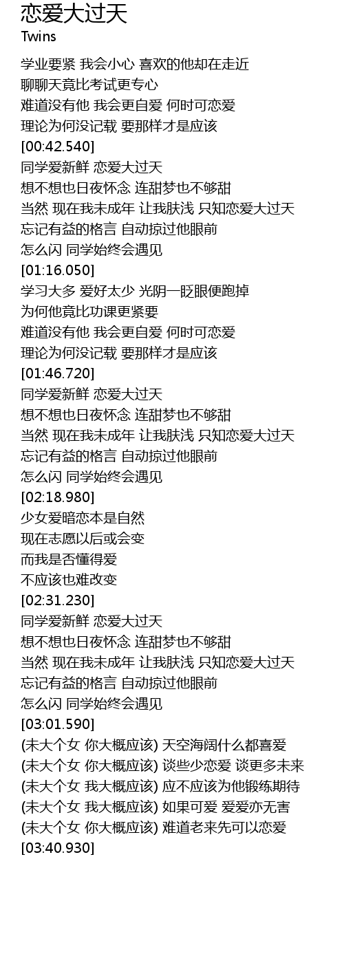 | [02:43.300] | 当然 现在我未成年 让我肤浅 只知恋爱大过天 |