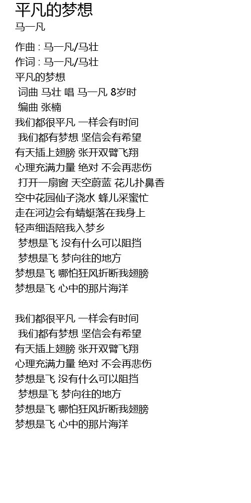 | 词曲 马壮 唱 马一凡 8岁时 | |