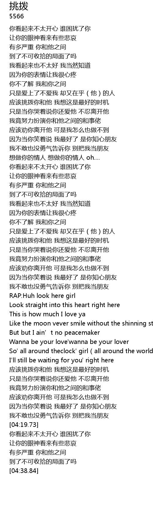 | [03:53.31] | 应该劝你离开他 可是我怎么也做不到 |