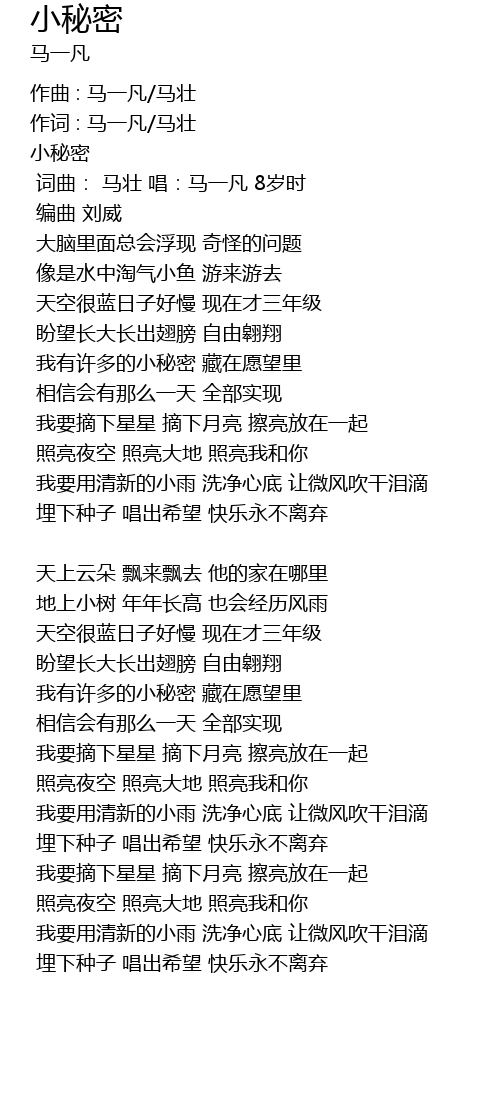 | 词曲: 马壮 唱:马一凡 8岁时 | |