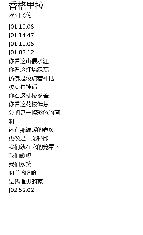 | [02:56.29][02:52.02][02:47.89] | 香格里拉 |