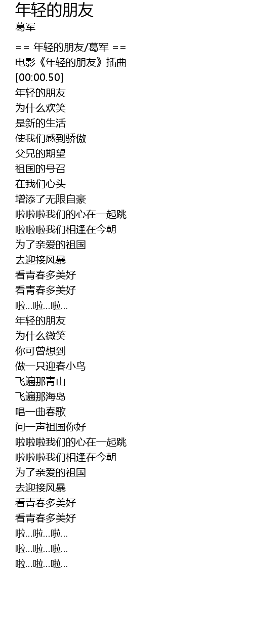 | [00:-0.20] | 电影《年轻的朋友》插曲 |