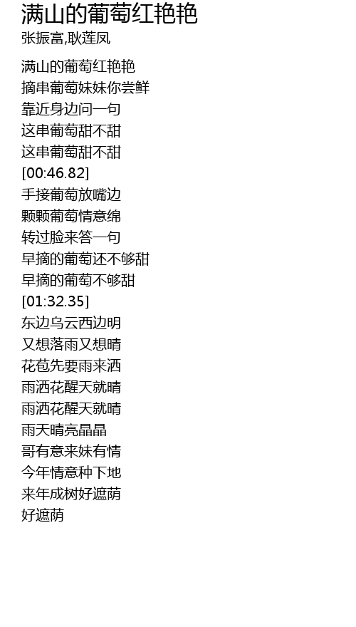 满山的葡萄红艳艳 man shan de pu tao hong yan yan Lyrics