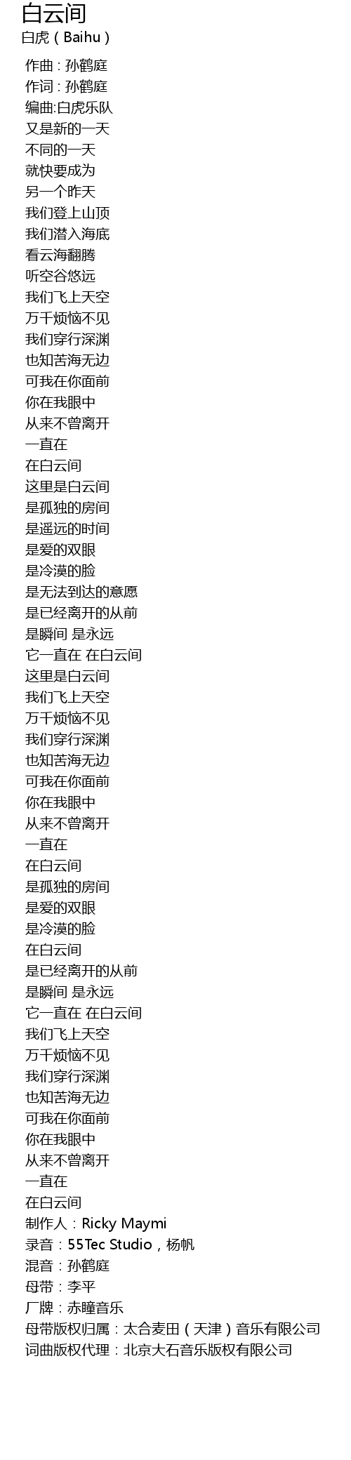 | [04:19.027] | 在白云间 |