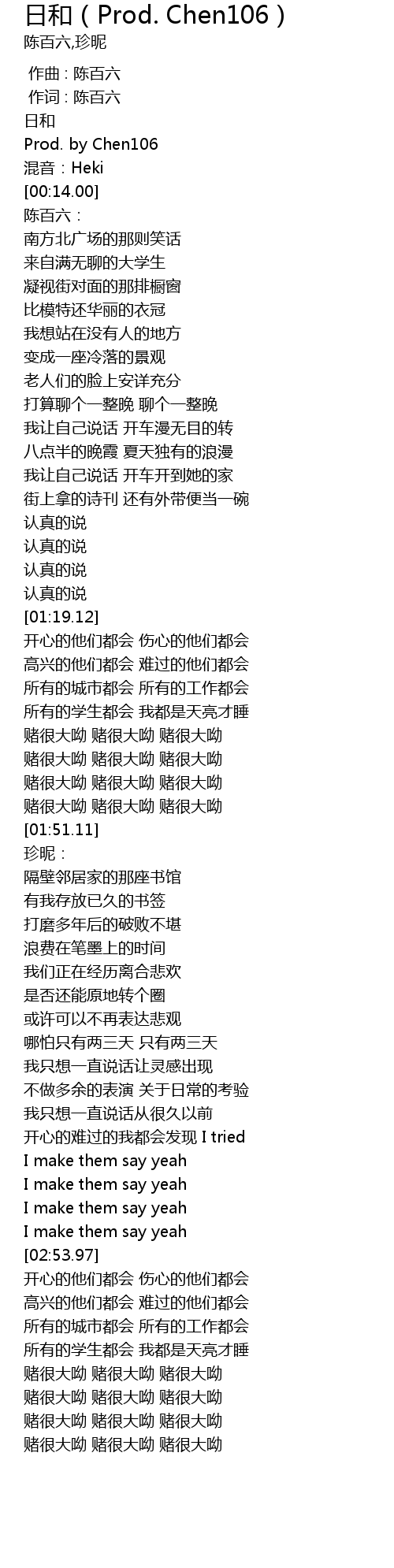 | [00:00.000] | zuò cí : chén bǎi liù |