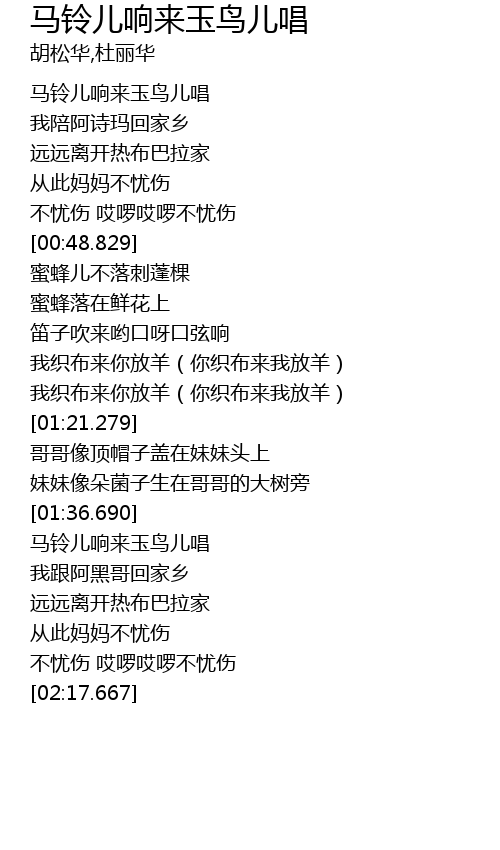 | [01:40.490] | 马铃儿响来玉鸟儿唱 |
