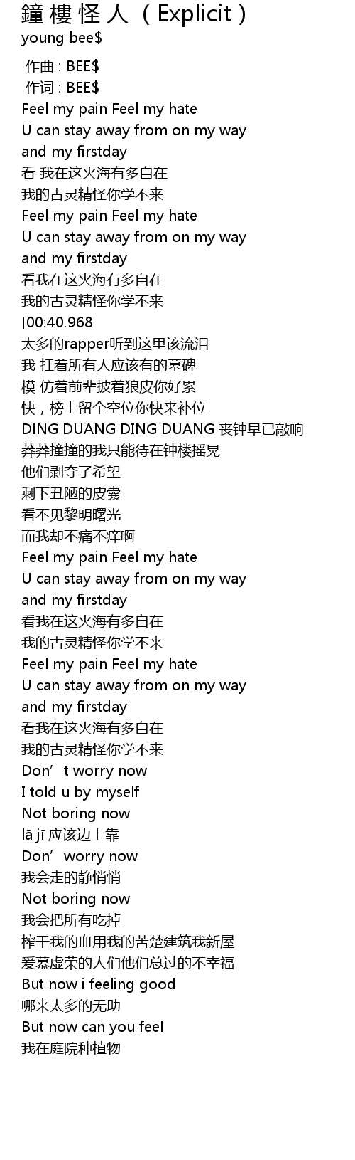 | Song | 鐘 樓 怪 人 (Explicit) |