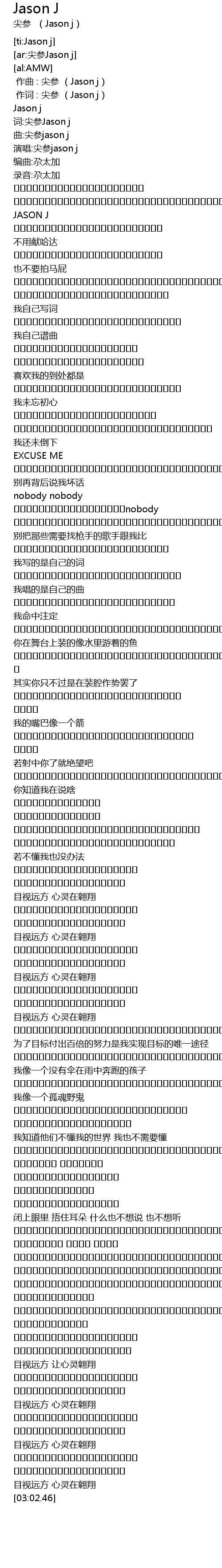 | [00:01.000] | 作词 : 尖参 (Jason j) |