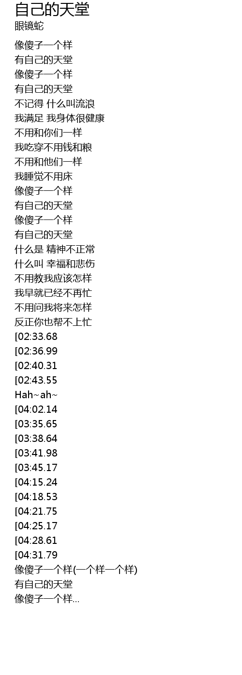 | [05:31.73][02:36.99] | 有自己的天堂 |