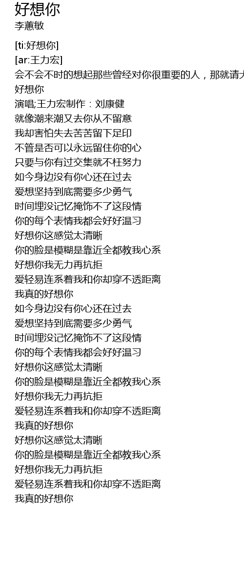 | [00:10.38] | 好想你 |