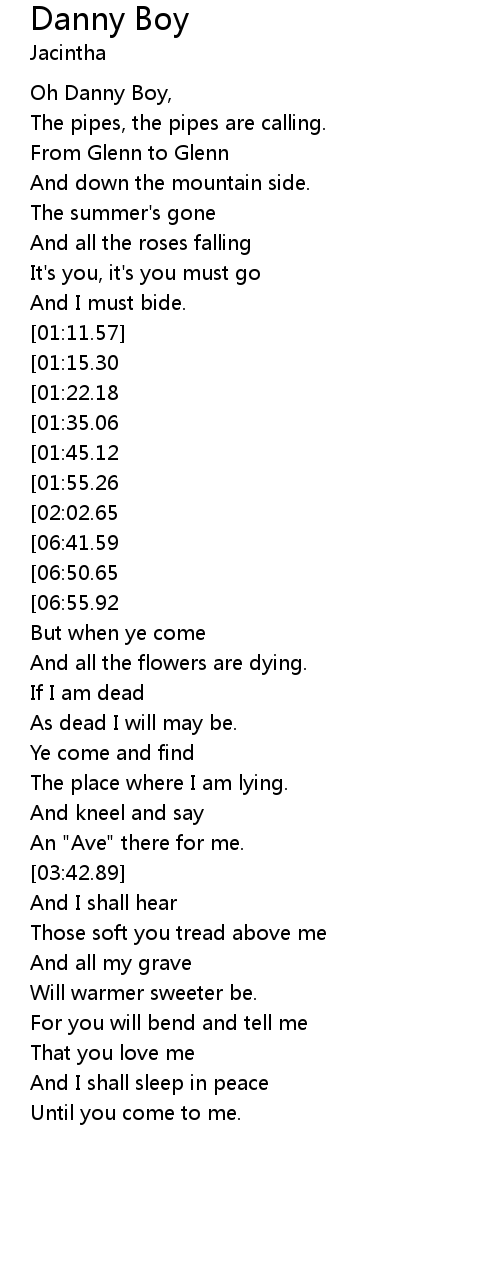 | [06:58.87][06:41.59][02:15.09] | Oh Danny Boy, oh Danny Boy |