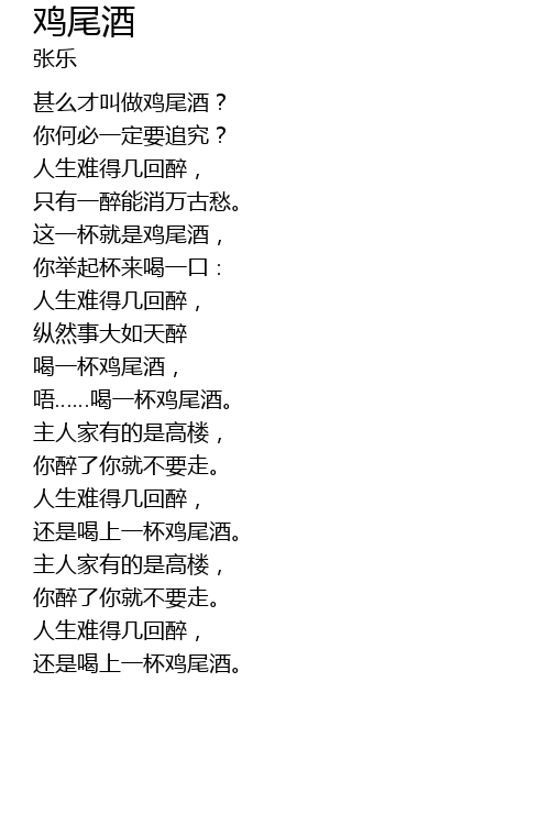 | [02:51.330] | hái shì hē shàng yī bēi jī wěi jiǔ. |