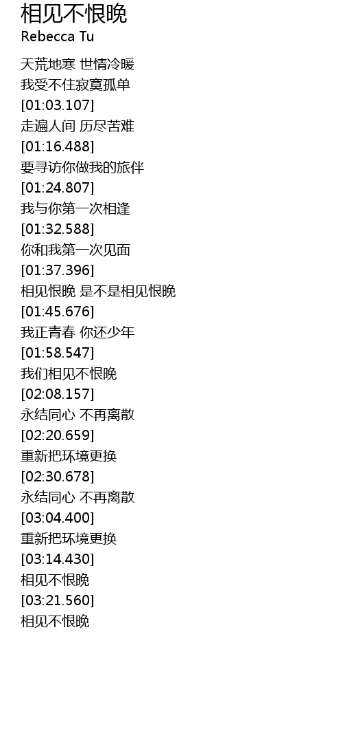 | [03:26.490] | xiāng jiàn bù hèn wǎn |
