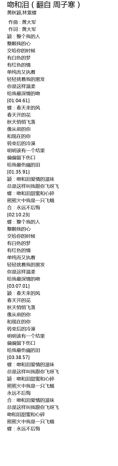 | [03:39.77] | 蝶:吻和泪爱情的滋味 |