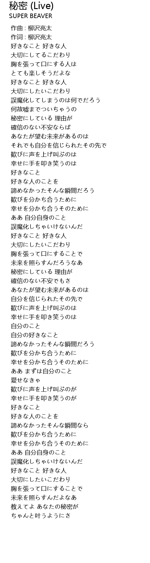 | [00:01.000] | 作词 : 柳沢亮太 |