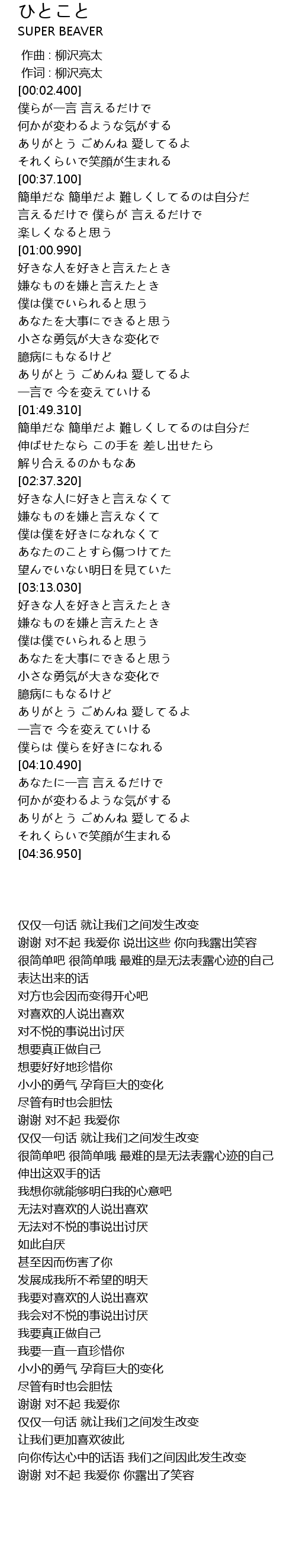| [02:40.640] | 好きな人に好きと言えなくて |