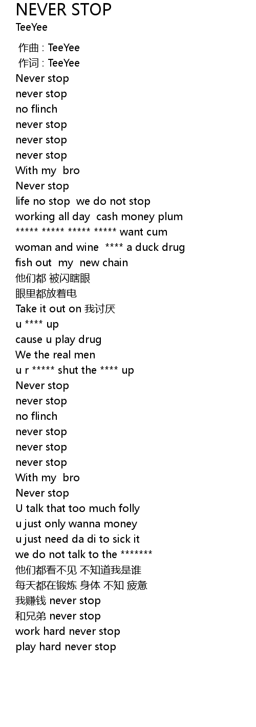 | [01:42.34] | wǒ zhuàn qián never stop |