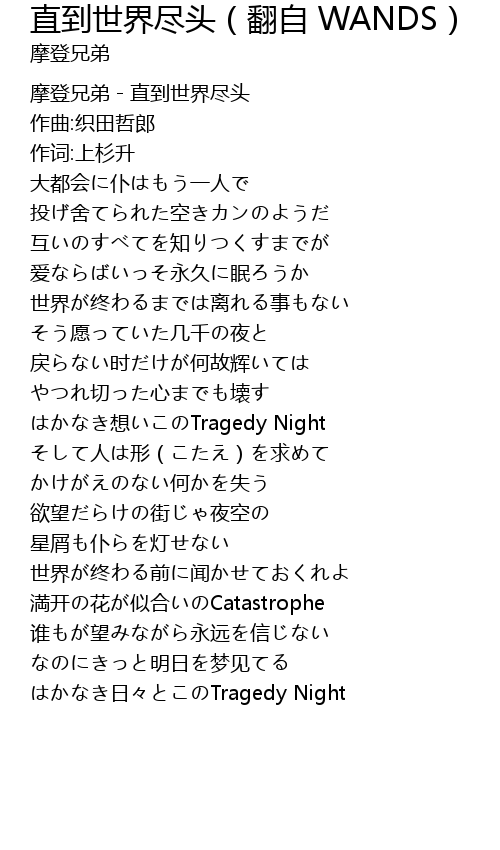 | [00:01.467] | 摩登兄弟-直到世界尽头 |