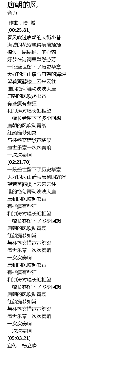 | [00:42.38] | 春风吹过唐朝的大街小巷 |