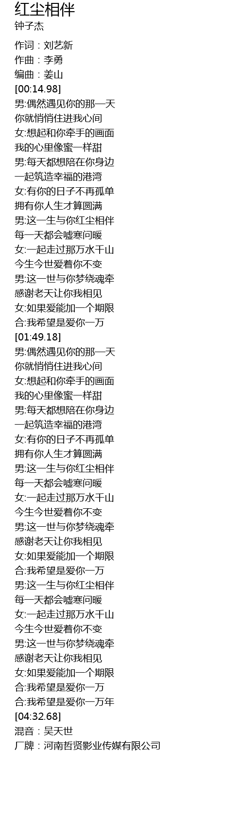 | [04:34.68] | 厂牌:河南哲贤影业传媒有限公司 |