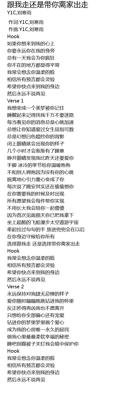 | [00:01.000] | 作词:Y1C,刘寒雨 |