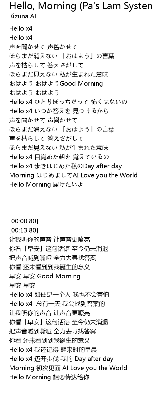| [02:51.40] | Morning はじめましてAI Love you the World |